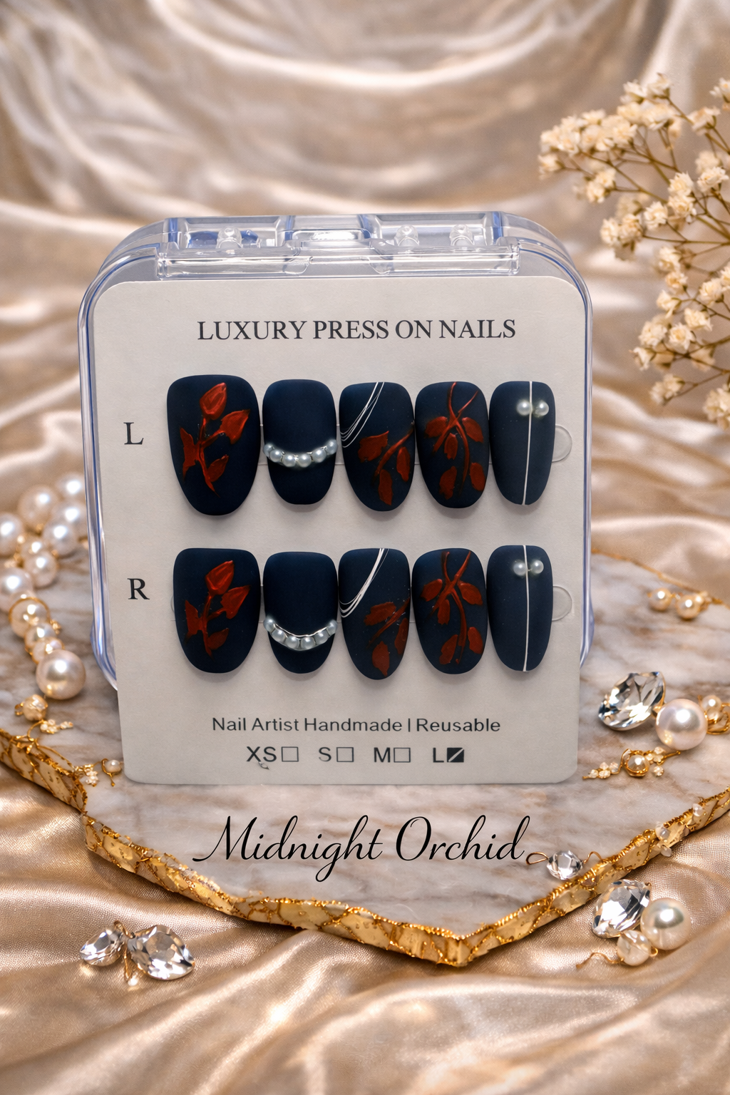 Each of our luxury 3D press-on nail sets is a one-of-a-kind design, individually handcrafted by professional nail technicians. No two sets are the same. Every detail is thoughtfully created to deliver a flawless, high-end finish with effortless application.